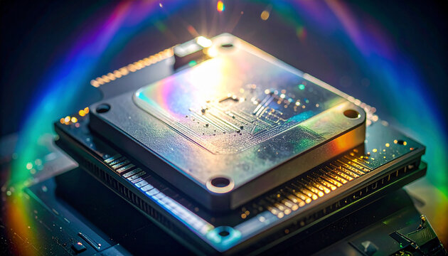 Futuristic Microchip with Glowing Red Center and Integrated Circuitry, Cyberpunk Tech Visual