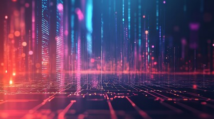 A Futuristic Industrial Landscape with captivating Neon Lights and intricate Abstract Data Visualization