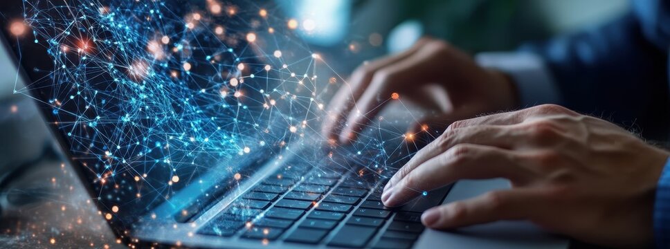 Abstract network nodes glowing, data streams visualized,  smart,  collection