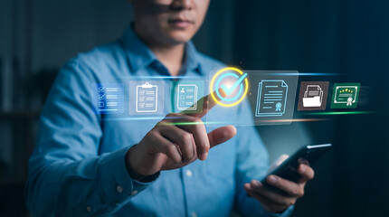 AI Artificial Intelligence technology for data analysis, research, planning and work generate programming. Man using laptop and AI assistant dashboard. Technology smart robot Agentic AI