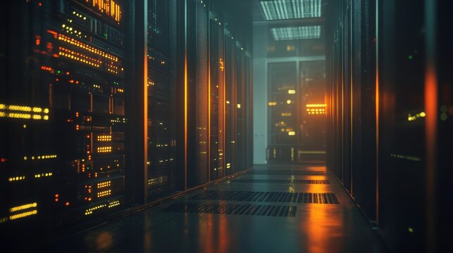 A modern visual depicts the interconnectedness of digital folders and data within a cutting-edge server room environment.