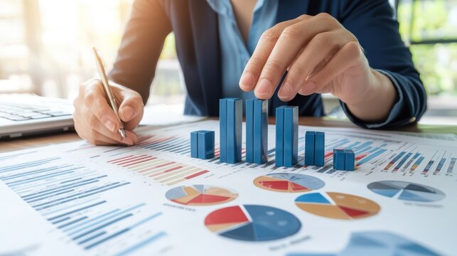 Illuminating Business Analysis: Analyst Organizing Data Blocks in Sunlit Room