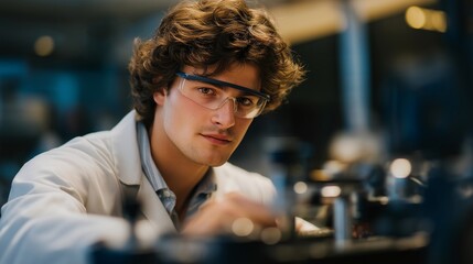 A scientist regulating a laser experiment from behind protective glass, calibrated knobs and digital sliders ensuring perfect alignment — lab precision, optical control, and cutting-edge research