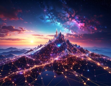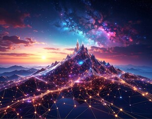 Focused project manager using AI technology for project scope definition and management in modern office at night, with data visualization on screens and serious expression,