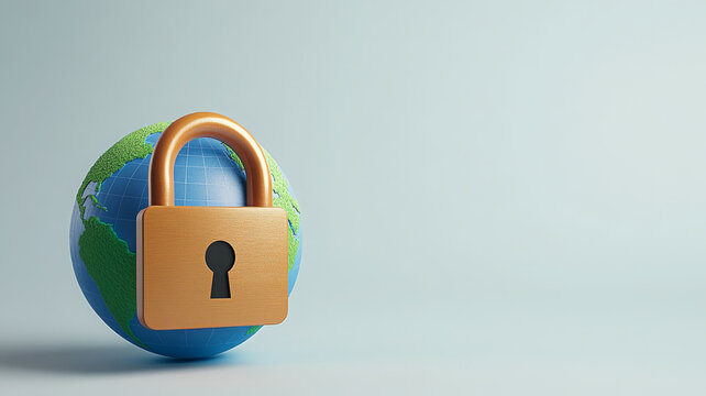 Globe, lock, security, protection, digital concept with secure padlock on Earth