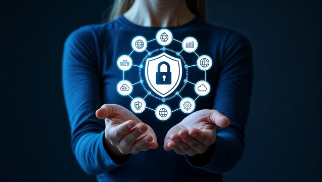 Protecting digital security with a glowing shield and padlock icon