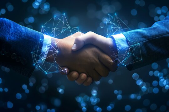 Futuristic abstract digital hologram of defi and decentralized finance on blockchain – revolutionary cryptocurrency and bitcoin online transaction concept