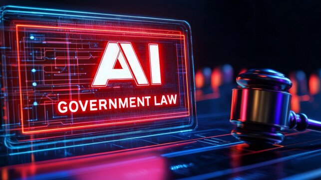 AI government  regulation  law concept. AI law concept with gavel and digital backdrop