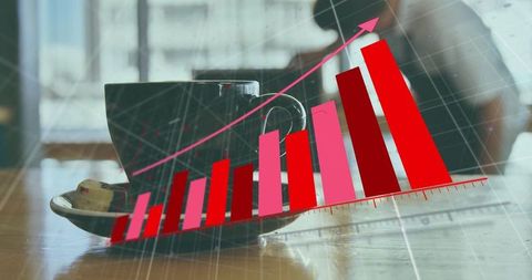 Digital bar graph overlay on business background