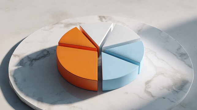 Clean and vibrant pie chart with glowing orange and pastel blue segments on light marble surface, showing data distribution clearly.
