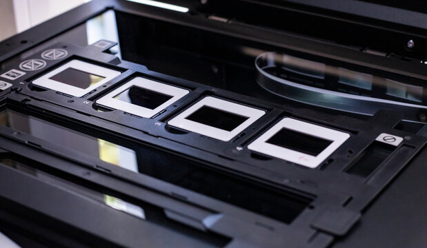 A group of old retro audio visual equipment used to capture or record  pictures, video, audio or data. The floppy disc, audio and video cassettes, film strip and  slides.