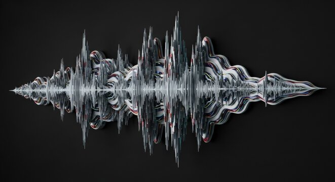 Abstract Sound Wave Sculpture with Metallic Spikes on Black Background