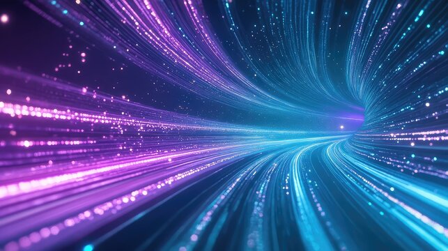 Streams of glowing, abstract data flowing through a tunnel of futuristic technology.,