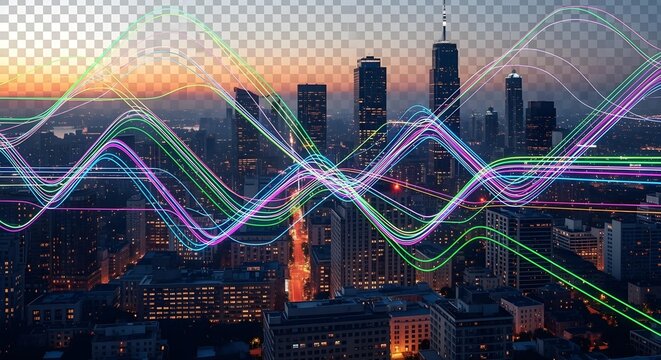 PNG. high speed data flow in the form of neon line of various shapes: stripe, zigzag, arc and curve on transparent background