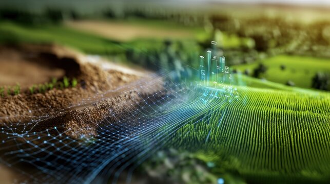 Futuristic agriculture data visualization in rural field