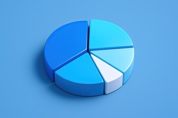 3D pie chart diagram with colorful segments on a smooth blue background for data analysis.