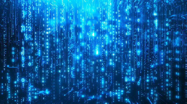 Digital data flow passing through server room. Futuristic network connection in data center. Big data transmission concept for high speed internet.
