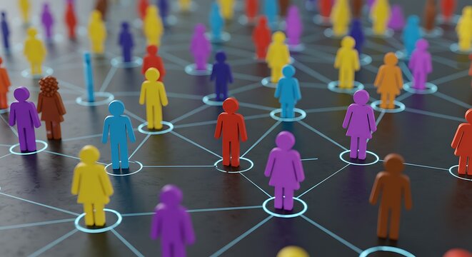 Colorful Network: Interconnected Figures in a Modern Abstract Style