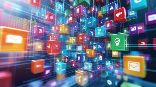 Digital connection overlapping virtual social media icons