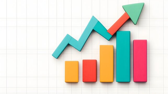 Rising neon bars forming luminous diagonal trend line on vibrant gradient background