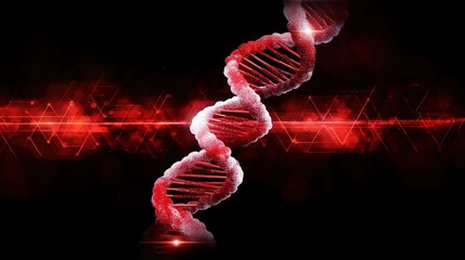 Abstract Red DNA Double Helix with Digital Effects on Black Background