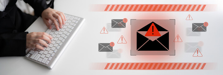 Alert System system warning popup on screen, spam virus with warning caution for notification on internet security protect, code and cyber security and phishing spyware and compromised information.