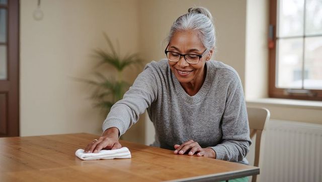 Man cleaning kitchen countertop with care