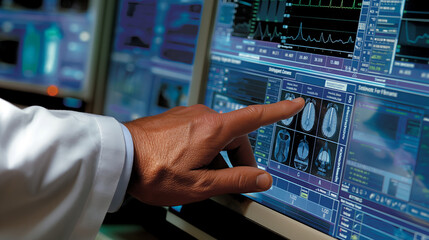 Futuristic computer display showcasing vibrant digital patterns with colorful light reflections.