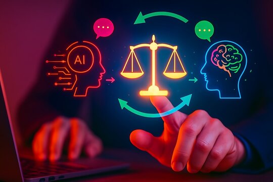 Generative artificial intelligence concept. AI agent interface on laptop with user typing prompts in digital workspace, machine learning processes, data analysis, chatbot for innovation and automation