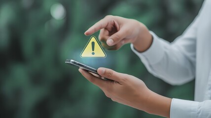 Digital Warning Symbol Above Smartphone Cybersecurity Alert and Online Risk Notification