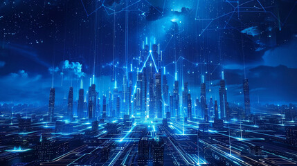 Futuristic blue technology gradient background with abstract digital patterns, glowing data streams, and modern tech-inspired banner design for high-tech and digital innovation themes