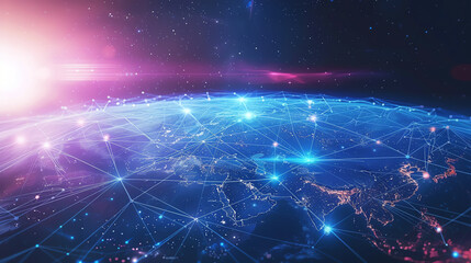 A digital representation of global connectivity with a network of connected points and glowing lines, symbolizing the internet and communication across the world.