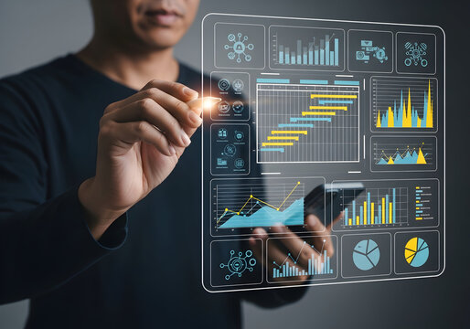 Futuristic Business Data Analysis with Digital Charts and Graphs | Technology and Innovation Concept