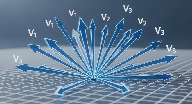 Multidimensional Movement: A Set of Labeled Vectors Spreading Across a Grid Plane
