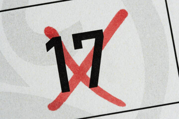 Calendar with number 17 crossed out with red cross indicates significant or completed day.