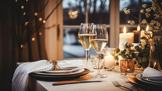 Festive date night tablescape idea, dinner table setting for two and Christmas, New Year, Valentines day decor, English countryside home styling