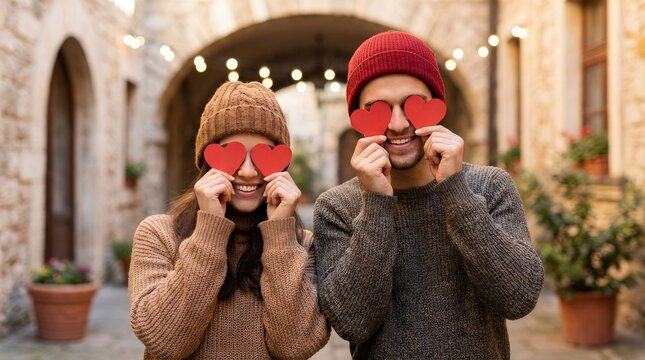 Romantic couple enjoying intimate candlelit dinner outdoors