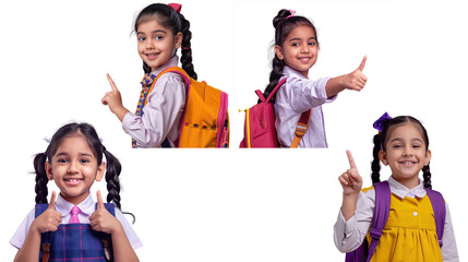 Happy indian kid primary elementary school girl with backpack wearing school uniform