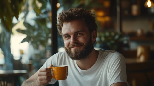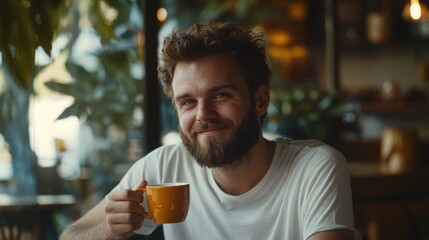Take a minute to do something nice for yourself. a young man having lunch in a restaurant.