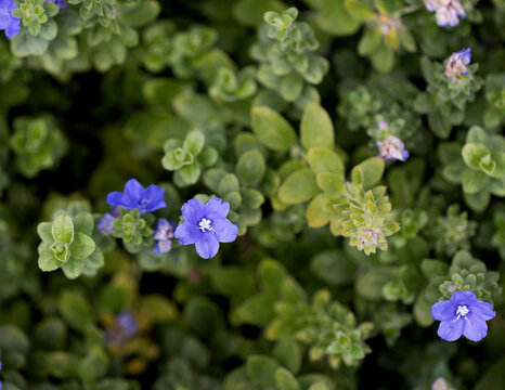 A view of several flowers from the blue daze evolvulus plant.