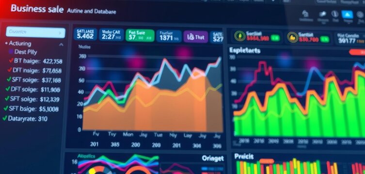 Business analytics dashboard showing sales data from a database storage system, marketing, ecommerce