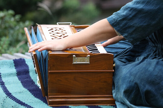 ハルモニウムの演奏をする女性