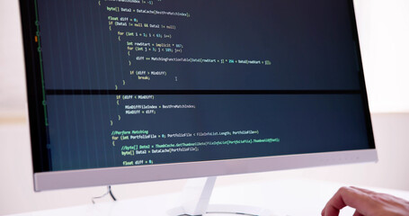 Computer Programmer Writing Program Code On Computer