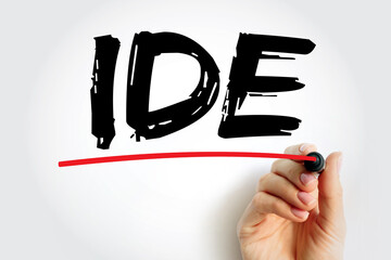 IDE - Integrated Development Environment - software application that provides comprehensive facilities to computer programmers for software development, acronym concept for presentations and reports