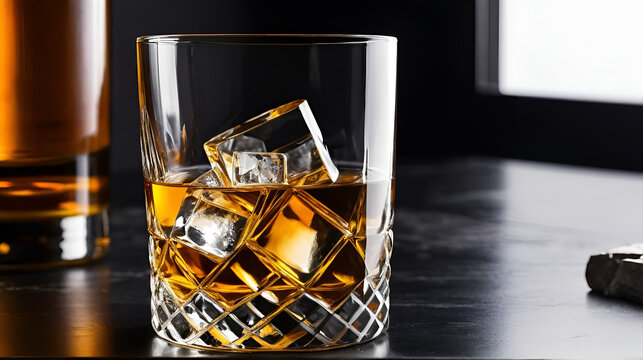 Elegant whiskey on the rocks in a glass.
