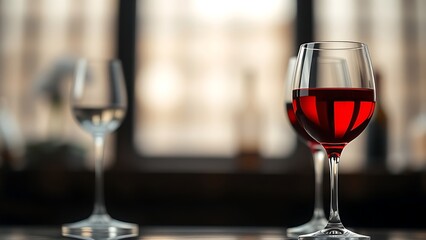 decant. Elegant wine glasses filled with red liquid in an artistic arrangement against a sophisticated backdrop. bar promotions, beverage menus, designed for food & beverage menus and cafe branding.