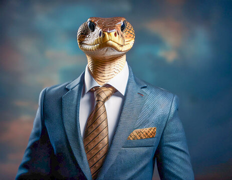 Generated image of snake in jacket and tie.