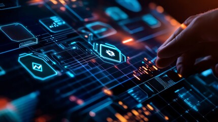 Decentralized finance or DeFi concept on modish computer screen . The defi system give new choice of investment and money saving .