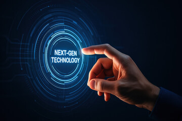 A hand interacts with a futuristic digital interface illustrating next-gen technology symbolizing innovation strategic decision making and business growth