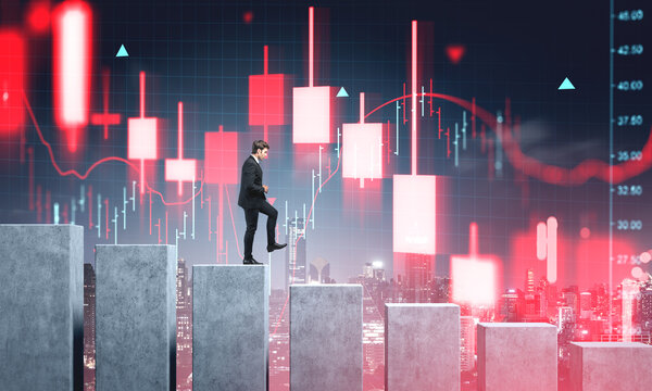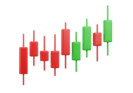 A Dynamic 3D Rendering of a Candlestick Chart with Red and Green Candles, Perfect for Financial Illustrations, Stock Market Analysis, and Investment Concepts
